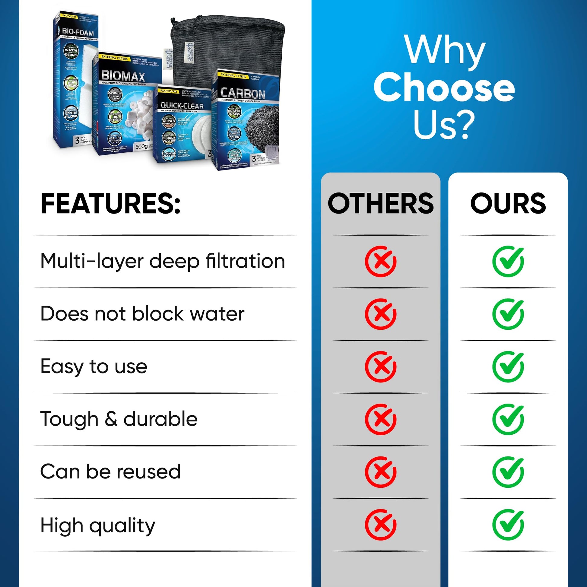 - FX4/FX5/FX6 3-Pack Bio-Foam Block allows water to flow through while trapping debris and provides mechanical and biological filtration for fewshwarter and saltwater aquarium fish tanks. It helps to create clean and healthy water conditions